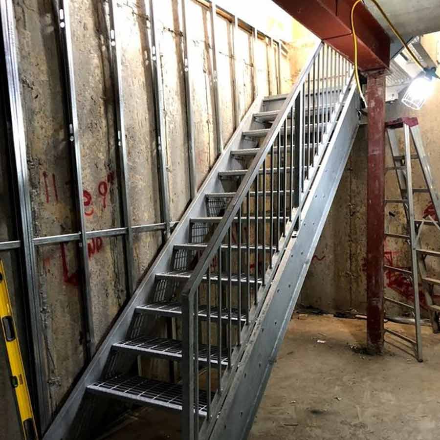 Steel landings and intermediate platforms are integrated into stair systems to support level changes, rest points, and directional transitions within commercial facilities.