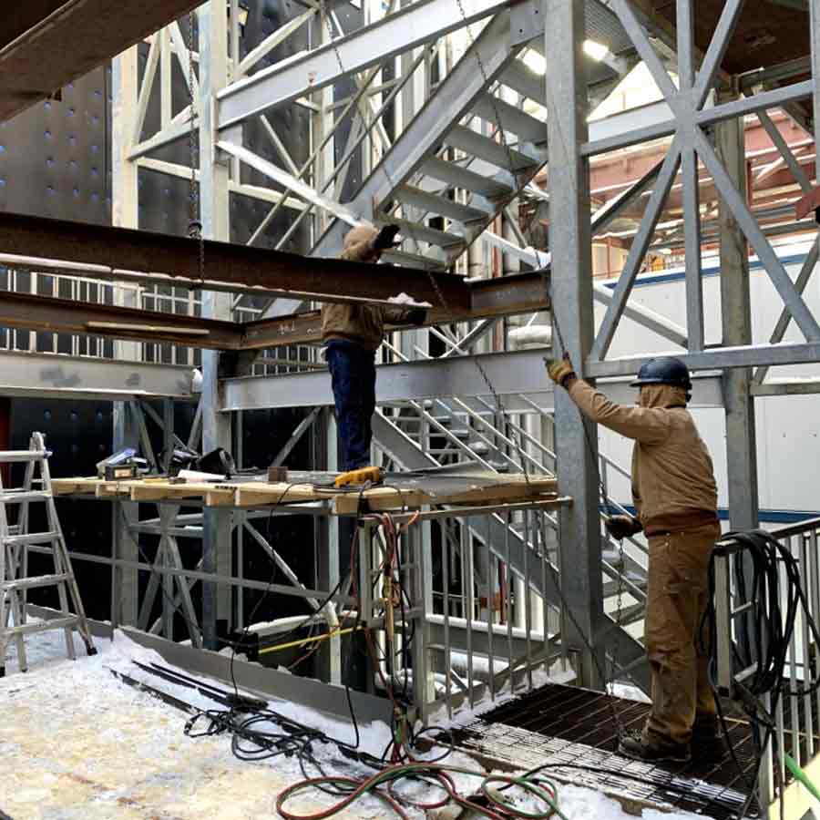 Precision field fabrication to connect new steel elements to legacy structures, machinery, or building frameworks.