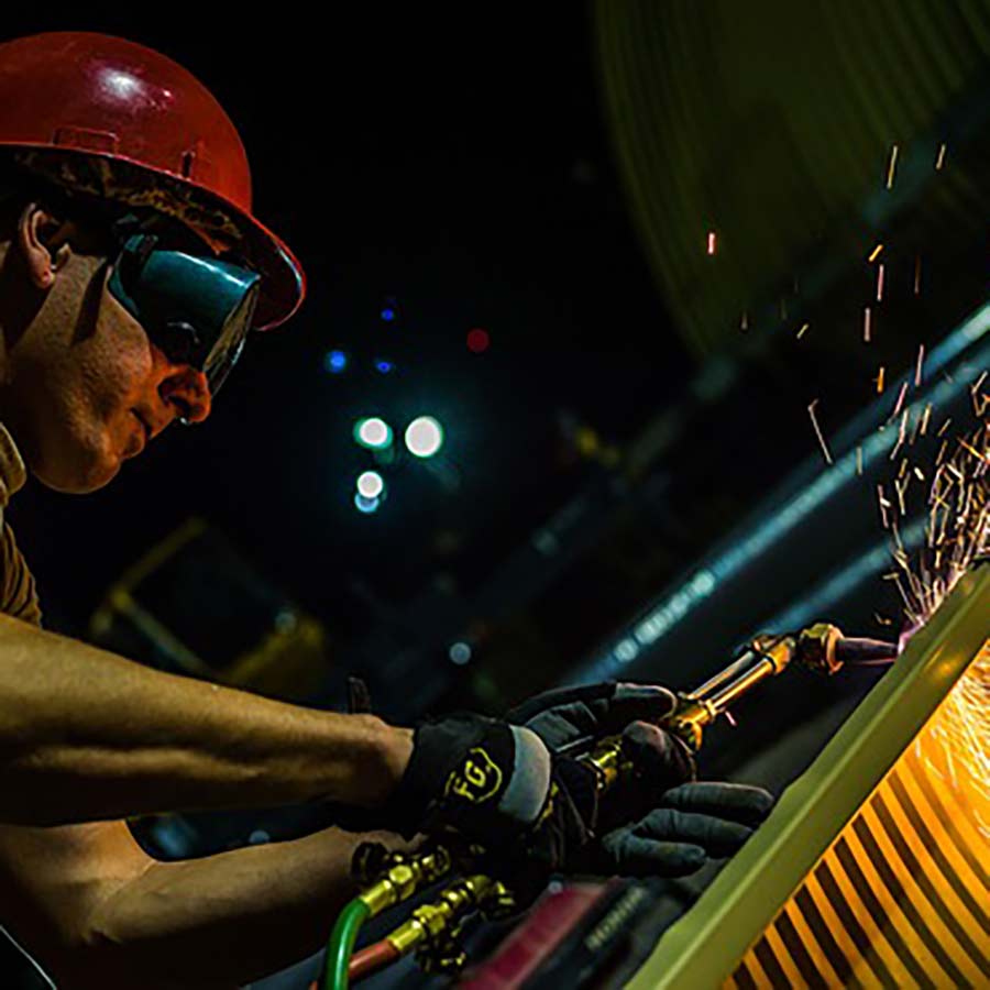 Work is performed in operational environments requiring controlled access, hot-work permits, and safety coordination.