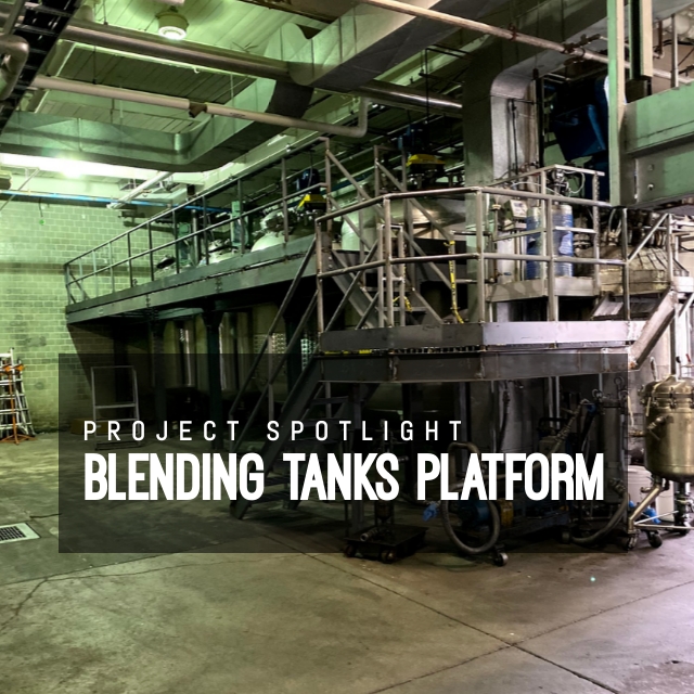 Recently we finished a project for Siltech Corporation, an industrial company specializing in chemical manufacturing. A mezzanine-platform was custom fabricated by our team of welders to support large tankers that hold industrial-grade chemicals inside the plant. The platform offers the dual purpose of supporting the large tankers, and allowing for employees to perform maintenance and repairs if needed.